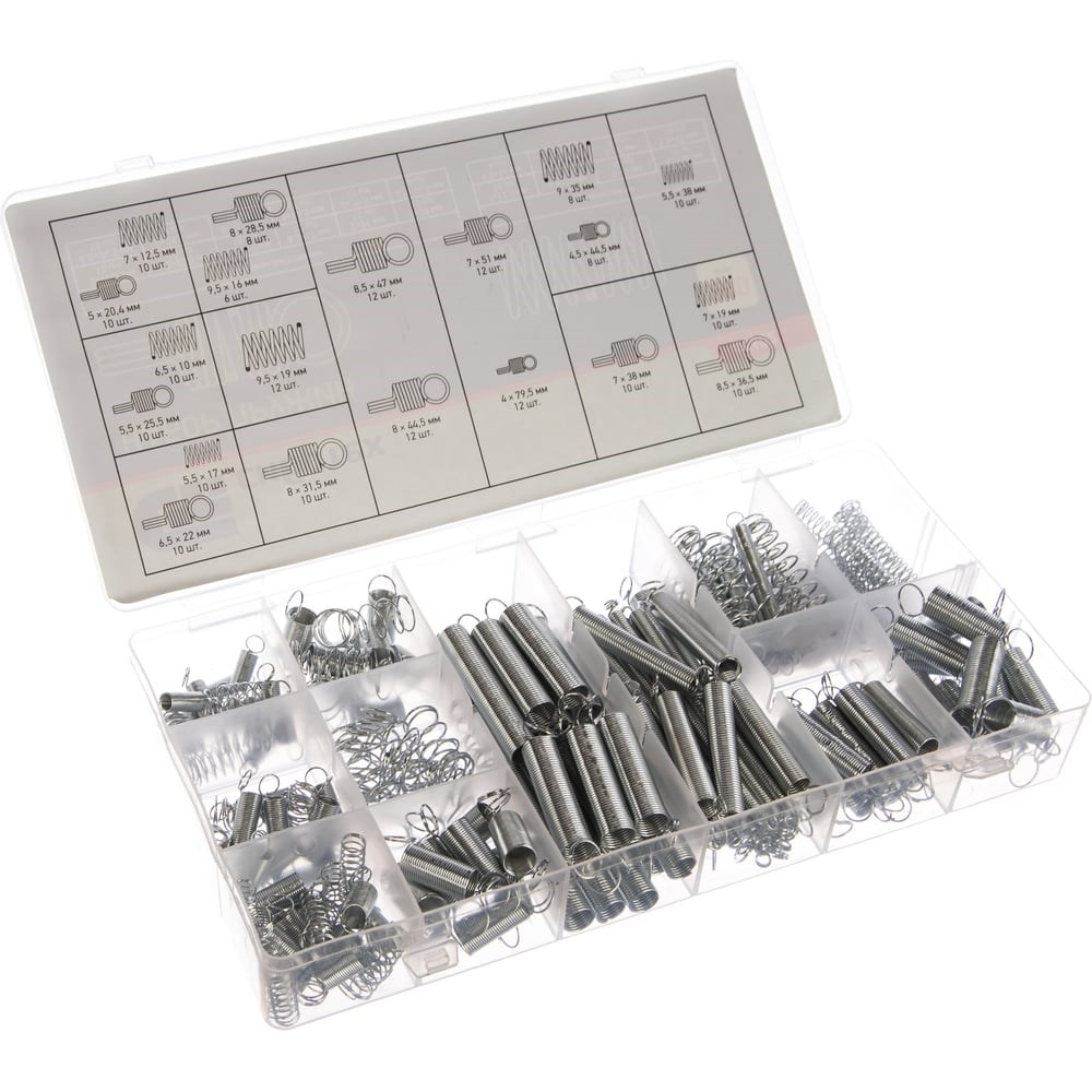 Набор пружин СИБРТЕХ 200 предметов 47602 представляет собой ассортимент приспособлений различного размера. Пружины изготовлены из стали. В комплекте представлены инструментальные пружины и пружины общего назначения. Набор поставляется в кейсе для удобного хранения.