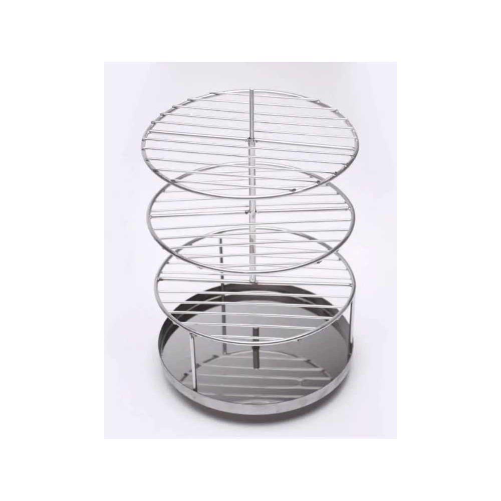 Копчение в автоклаве Булат возможно только при использовании специальных решёток и поддона. Набор подходит для моделей на 18, 25 и 32 литра. В набор для копчения входит: решетка для продуктов с 3-мя ярусами; поддон для щепы. Инструкция Разместите щепу на поддоне, а продукты на решётках; Поместите конструкцию с продуктами в автоклав; Закройте крышку винтами и поставьте на плиту; Закрепите шланг для вывода дыма на штуцере клапана сброса давления. Другой конец шланга выведите в вытяжку или в форточку; Включите плиту. Время копчения зависит от продуктов и рецепта. Силиконовая прокладка и зажимы на крышке обеспечат герметичность автоклава. Для вывода дыма используйте стандартный шланг диаметром 8 мм. В собранном виде, диаметр решетки- 20,5 см, поддона- 22 см; Высота набора решеток булат 33.5 см