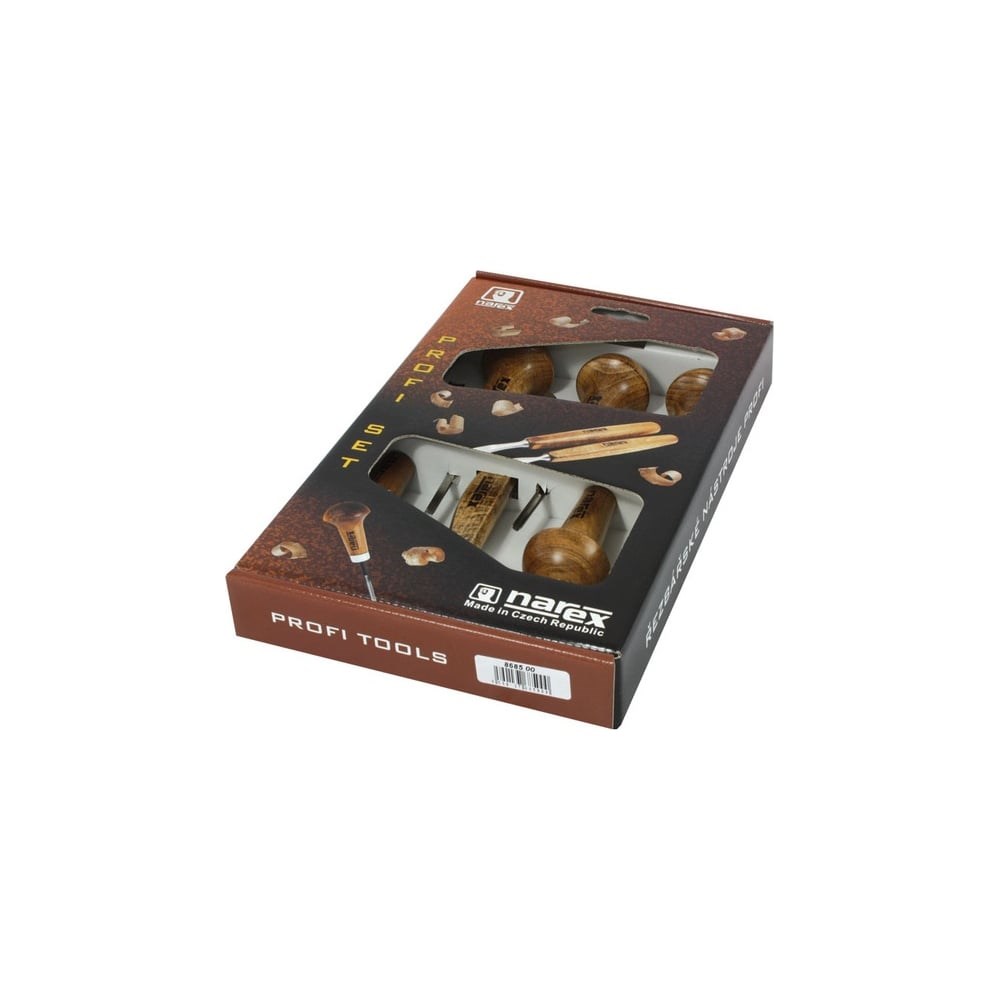 Набор из 5 резцов c полукруглой ручкой + нож по дереву NAREX 868500 состоит из ручных инструментов высокого качества, которые предназначены для резьбы по дереву. Лезвия приспособлений выполнены прочной хром-ванадиевой стали, закаленной до твердости 61-62 HRc. Рабочие кромки остро заточены и на долгий период сохраняют свою режущую способность. Рукоятки изготовлены из древесины, их поверхность дополнительно обработана воском.