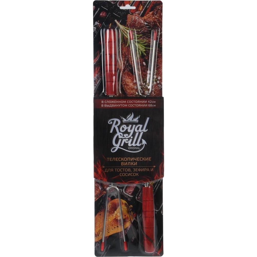 Набор из двух телескопических вилок для тостов, зефира и сосисок ROYALGRILL 80-054 незаменимы в походе или на пикнике. Для защиты от ожогов предусмотрена деревянная ручка. Для комфортного использования данная модель имеет телескопическую конструкцию.