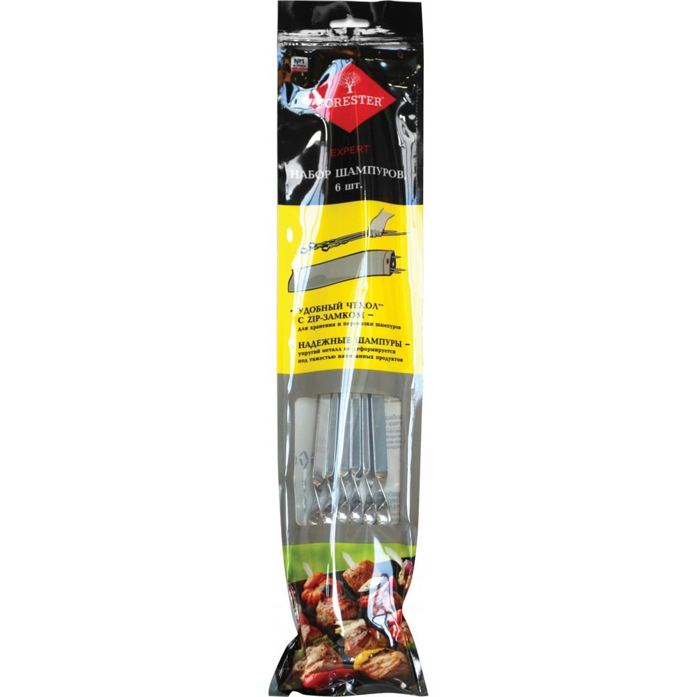 Набор шампуров малых FORESTER RZ-450SB необходим для приготовления походного лакомства - шашлыка. Шампуры Форестер изготовлены из упругой стали с коррозионностойким хромо-никелевым покрытием (медицинская сталь), поэтому их использование безопасно для здоровья, кроме того, шампуры не прогнутся под тяжестью нанизанных на них кусочков мяса. Еще одно преимущество данных шампуров - двойная электрополировка металла, которая делает поверхность гладкой, без заусенцев, к такой поверхности мясо меньше прилипает. Винтовая ручка не позволит шампуру прокручиваться на мангале. Блистер обеспечит удобство хранения и транспортировки, а также не даст шампурам потеряться. В набор входят 6 шампуров длиной 45 см.
