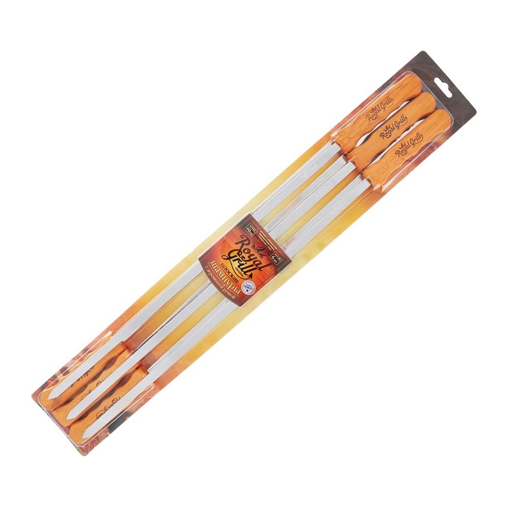 Набор плоских шампуров с деревянной ручкой ROYALGRILL 60х1х0.15см, 6 шт. 80-059 служат для приготовления пищи на мангале. Деревянная ручка снижает вероятность ожога в процессе готовки. Данная модель отличается длинной рабочей частью для больших порций.