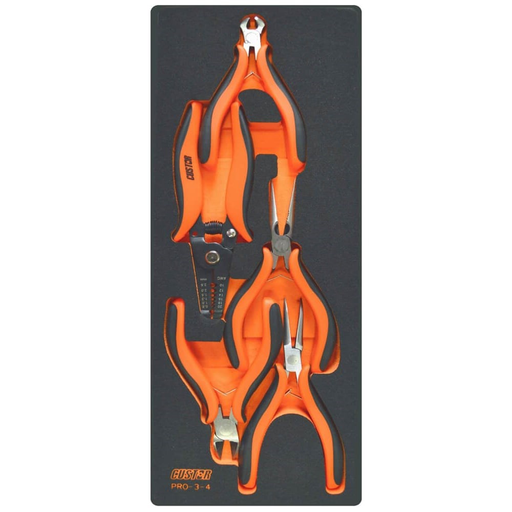 Набор шарнирно-губцевого инструмента для электрика CUSTOR 5 предметов, в ложементе VCS1/4 PRO-3-4