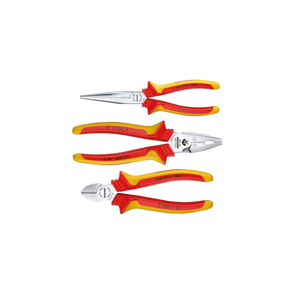 VDE-набор шарнирно-губцевого инструмента с изоляцией в виде чехла 3 предмета GEDORE 1550594 упрощает работу по монтажу или демонтажу электросетей. Рукоятки изолированы по стандарту EN 60900 / IEC 60900:2004. Эргономичная форма упрощает эксплуатацию.