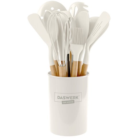 Набор силиконовых кухонных принадлежностей с деревянными ручками 12 в 1, молочный, DASWERK (ДАСВЕРК), 608193