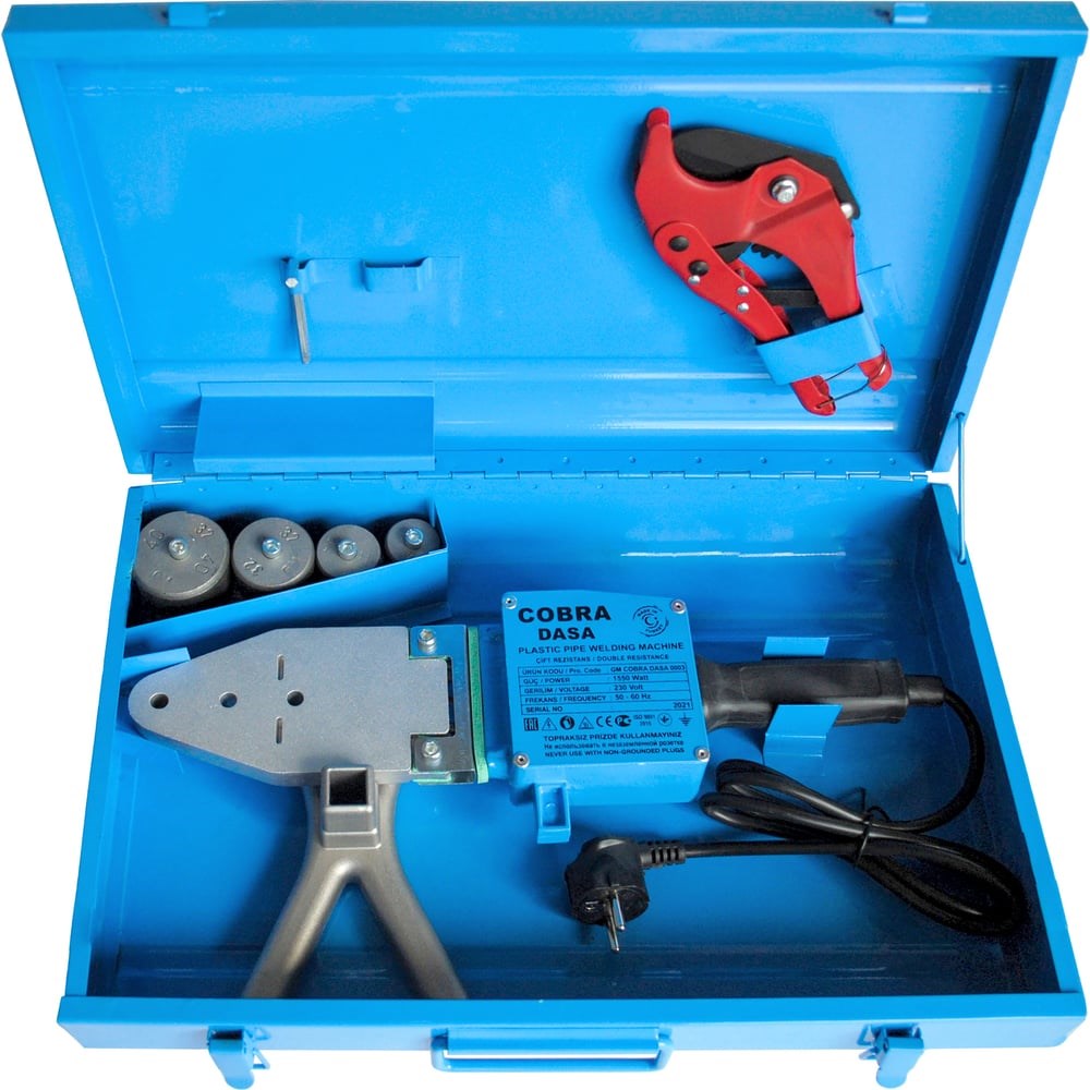 Набор сварочного оборудования GM COBRA DASA 20-40, 1500W GM 0003 используется для муфтовой или раструбной сварки различных полипропиленовых деталей и труб диаметром до 40 мм.Аппарат состоит из нагревательного блока из двух независимых электронагревательных элементов из алюминиевого сплава с тефлоновым покрытием. При одновременном включении быстро достигается необходимая рабочая температура нагрева, после чего аппарат может быть выключен с помощью тумблера на корпусе.Имеет простое и надежное регулирование температуры, которое осуществляется посредством встроенного термостата. Диапазон регулировки - от 50°С до 300°С.Три отверстия на нагревательном элементе позволяют устанавливать одновременно три нагревательные насадки разного диаметра.