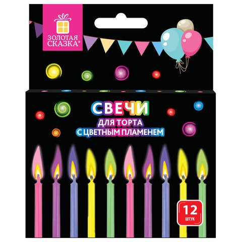 Набор свечей для торта с цветным пламенем 12 шт., 6 см, с держателями, ЗОЛОТАЯ СКАЗКА, 591460