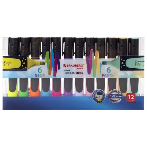 Набор текстовыделителей 12 ЦВЕТОВ на подставке, BRAUBERG "EXTRA", прорезиненный корпус, линия 1-5 мм, 151758