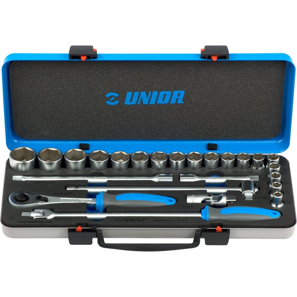 Набор торцевых головок Unior на 1/2" дюйма, в металлическом кейсе, 24 предмета, 10-32мм 3838909119397 представлен в оптимально комплектации. Инструмент изготовлен из высокопрочной стали для долгой службы. Набор поставляется в прочном кейсе размерами 448 x 198 x 54 мм для удобного хранения.