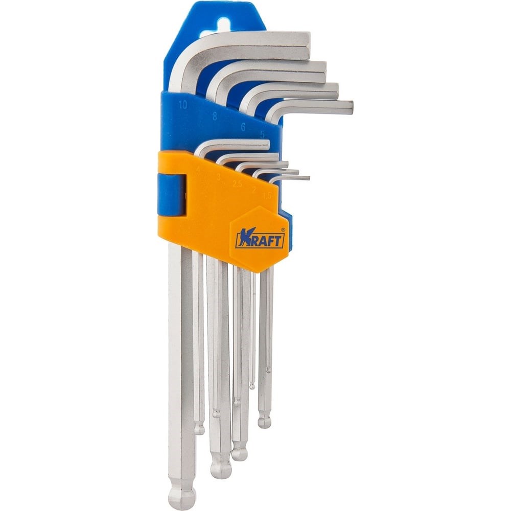 Набор торцевых шестигранных Г-образных ключей с шаром, длинных 9шт KRAFT KT 700562 представляет собой удобный инструмент, который можно использовать при работе с крепежом с внутренним шестигранником. Для удобства поставляется в пластиковом держателе.