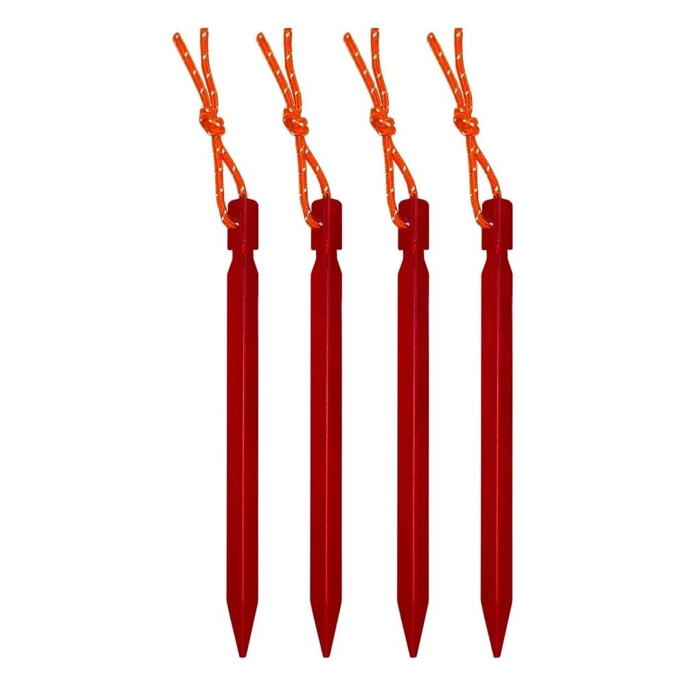 Набор ультралегких Y-образных колышков COGHLAN'S 4шт, 18см, красные 118MA сделаны из анодированного алюминия. Легкие и в тоже время прочные они не создадут дополнительной нагрузки и надежно удержат палатку или тент. Уникальная Y конструкция предотвратит проворачивание в грунте. В верхней части колышков имеются выемки для крепления оттяжек и отверстие для крепления веревки. Прикрепленный нейлоновый шнурок со светоотражающими нитями позволит легко вынимать колышки из грунта. Ярко красный цвет делает колышки заметными на любой поверхности и не позволит споткнуться о них или потерять в траве. Эти колышки универсальны и подойдут для установки практически любой палатки, навеса, гамака, батута и т.д. на разных видах грунта. Имеют длительный срок службы.