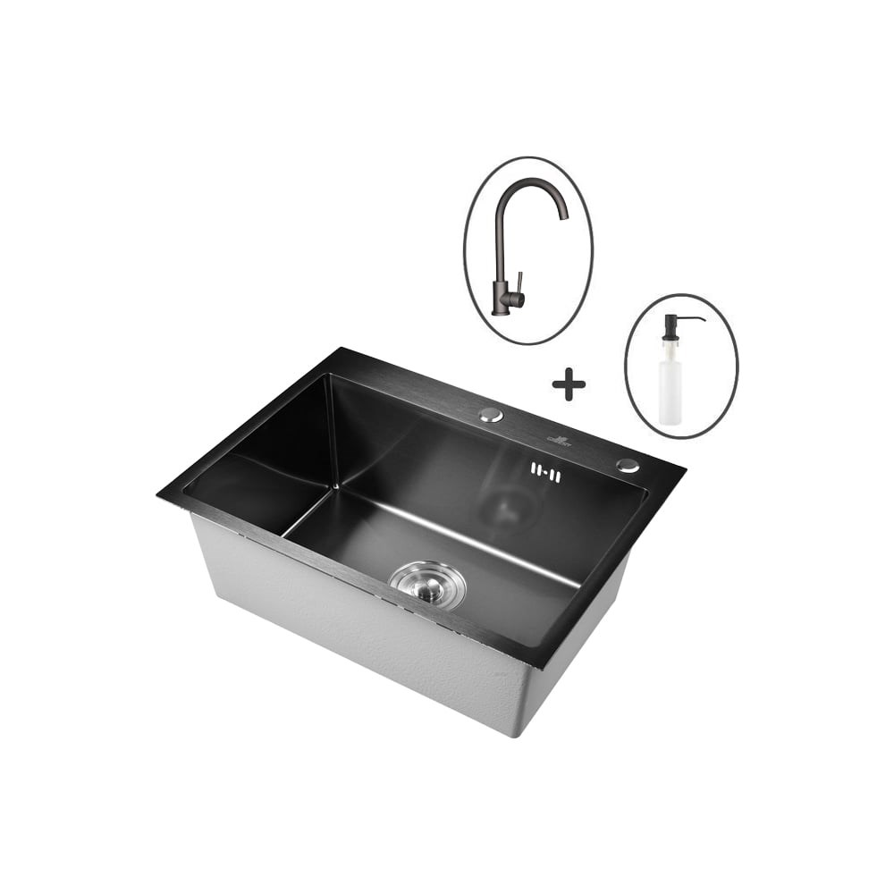 Кухонная мойка WISENT изготовлена из нержавеющей стали SUS304 толщиной от 1 до 3 мм. Химический состав и свойства делают марку 304 наиболее подходящей для применения в пищевой промышленности. Она показывает высокие характеристики коррозийной стойкости в агрессивных средах. Толщина стенки мойки составляет 1 мм, толщина бортика 3 мм. Шумоизоляция, нанесенная путем напыления, позволяет значительно снизить звук от потока воды. Мойка полуматовая. PVD покрытие – это покрытие выполненное методом напыления в вакууме, при котором частицы покрытия соединяются с молекулярной структурой металла и образуют прочный защитный слой. Кухонные мойки с PVD покрытием более просты в уходе и удобны в эксплуатации, устойчивы к механическим повреждениям. С них легко удалить следы жира, грязи и разводы от воды. Врезной дозатор для жидкого мыла или средства для мытья посуды поможет освободить место на кухне. В связи с особенностями производства в геометрии мойки допустимо расхождение 1-3мм. Мойка устанавливается на герметик и прижимается грузом. При данном способе установки края будут плотно прилегать к столешнице.