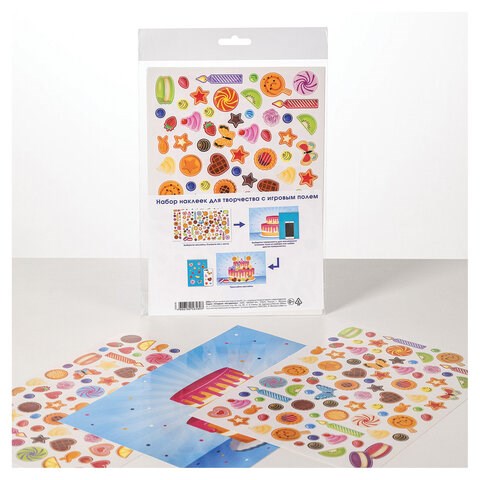 Набор наклеек для творчества "Сладкое настроение" включает в себя два листа с большим количеством ярких тематических наклеек. Кроме того, в комплект входит игровое поле формата А5, на которое можно наклеивать картинки-наклейки, с удовольствием погрузившись в творческий процесс. Также наклейки можно использовать для украшения смартфонов, блокнотов, тетрадей и оформления открыток и подарков.