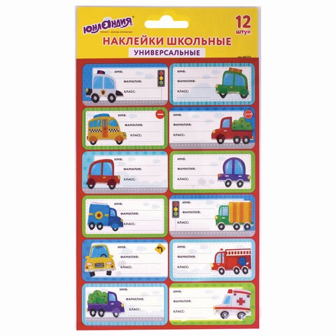 Наклейки для маркировки школьных принадлежностей "Машинки", 12 штук, 14х21 см, ЮНЛАНДИЯ, 662712