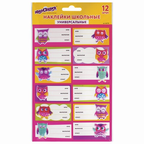 Наклейки для маркировки школьных принадлежностей "Совы", 12 штук, 14х21 см, ЮНЛАНДИЯ, 662710