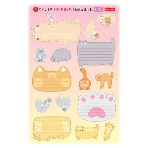 Наклейки "КОТОВАСИЯ" для маркировки школьных принадлежностей, НАБОР 4 листа, 64 наклейки, HATBER, 4Н5н