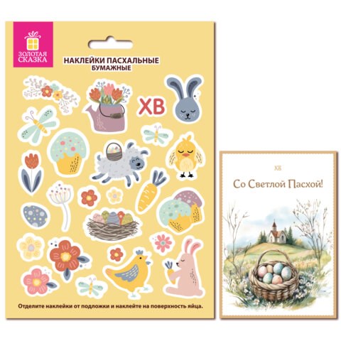 Наклейки пасхальные для яиц 1 ЛИСТ 21x14,8см, "Пасхальная радость", открытка, ЗОЛОТАЯ СКАЗКА, 592658