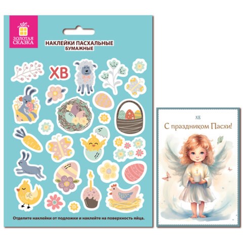 Наклейки пасхальные для яиц 1 ЛИСТ 21x14,8см, "Светлый праздник", открытка, ЗОЛОТАЯ СКАЗКА, 592657