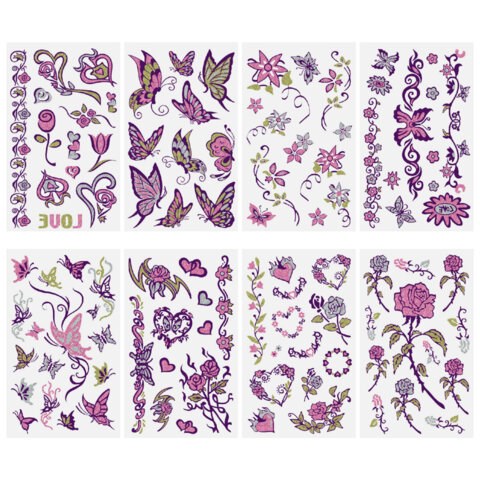 Наклейки-тату переводные "Блестящие", 15,5х9,5 см, ассорти 8 видов, FUNSTER (ФАНСТЕР), 666107