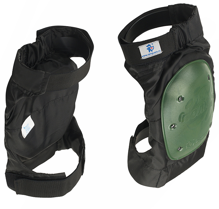 Наколенники с защитной чашкой. Обеспечивают превосходную защиту коленных суставов от избыточной нагрузки, возникающей при длительной работе. Основа наколенников изготовлена из высокопрочной синтетической ткани «Оксфорд», которая устойчива к механическим повреждениям, обладает водоупорностью, проста в уходе и легковесна. На внешней части наколенника закреплена защитная чашка из ударопрочного полиэтилена низкого давления. Под защитной чашкой находится амортизирующая вставка из пенополиэтилена для дополнительной защиты коленного сустава. Чашка фиксируется при помощи металлических заклепок. Крепление — широкие эластичные ленты-липучки. Наколенники надеваются поверх одежды.