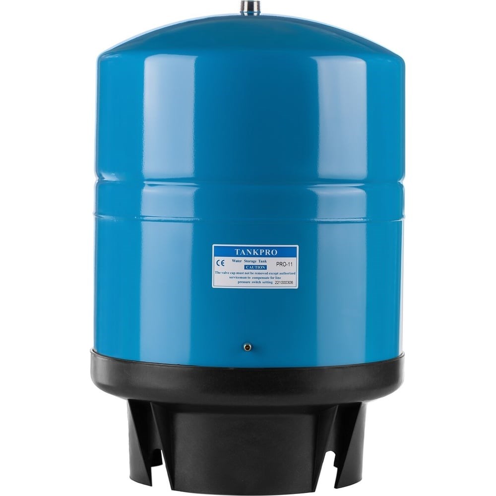 Металлический накопительный бак RO 11 Gall 25677 используется в системах обратного осмоса для хранения и подачи очищенной воды. Вода в баке находится под давлением, необходимым для её транспортировки в точки потребления. Полный объём бака - 40 л, объём воды - до 70% от полного объёма - показатель зависит от давления в магистрали. Бак комплектуется ниппелем для контроля давления внутри бака - при необходимости можно спустить, либо подкачать насосом. Максимальное рабочее давление - 6,9 атм; Давление внутри бака - 0,5 атм.; Рабочая температура - 1-50 гр.; Выход чистой воды - ¾ наружная резьба"; Высота с подставкой - 620 мм, без подставки - 530мм, Диаметр - 380 мм.