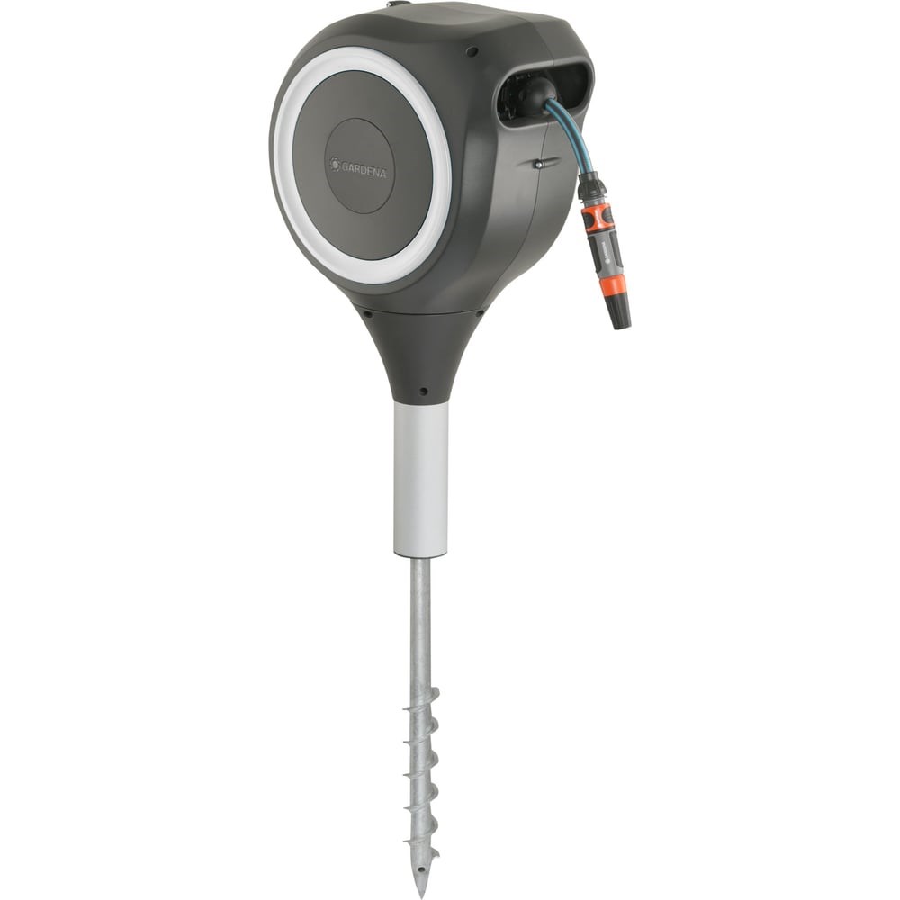 Напольная автоматическая катушка со шлангом Gardena RollUp S 18606-20.000.00 служит для хранения и эксплуатации поливочного шланга. Конструкция оснащена механизмом автоматической намотки шланга, он обеспечивает удобство во время работы. Модель изготовлена из качественных материалов, что обеспечивает продолжительный срок службы. Ножка в форме бура позволяет надежно установить катушку в землю.