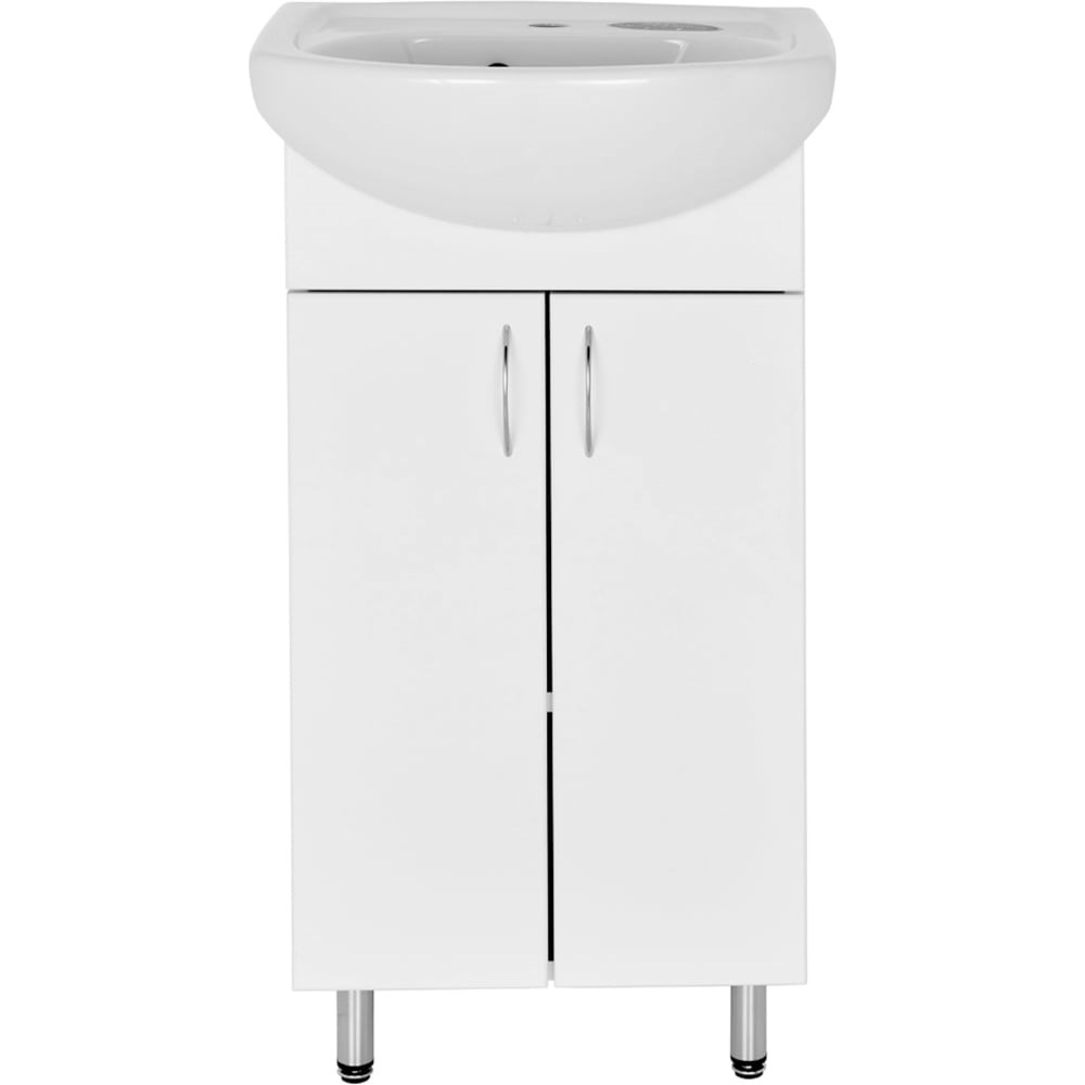 Тумба для ванной комнаты Orange Роса с раковиной - это идеальное решение для тех, кто ищет качественную и стильную мебель для своего дома. Эта тумба выполнена в современном дизайне и имеет компактные размеры, что позволяет разместить ее в любом уголке вашей ванной комнаты. Она изготовлена из высококачественных материалов, таких как МДФ и ЛДСП, которые обеспечивают прочность и долговечность изделия. Тумба имеет две дверцы, каждая из которых оснащена механизмом доводчика, что обеспечивает плавное закрывание и предотвращает повреждение мебели. Тумба имеет прямоугольную форму и оснащена полочками для хранения необходимых вещей. Она также оснащена накладным умывальником из фаянса, который идеально подходит для использования в ванной комнате. Фурнитура, выполненная в хромированном цвете, придает изделию современный и стильный вид. В комплект поставки входит тумба, умывальник, ножки и инструкция по сборке. Тумба поставляется в белом глянцевом цвете, что делает ее идеальным выбором для тех, кто ценит простоту и элегантность в интерьере. Она легко впишется в любой интерьер и станет незаменимым элементом вашей ванной комнаты. Внимание! Смеситель и зеркальный шкаф и декоративное кольцо на перелив у раковины в комплект поставки не входят.
