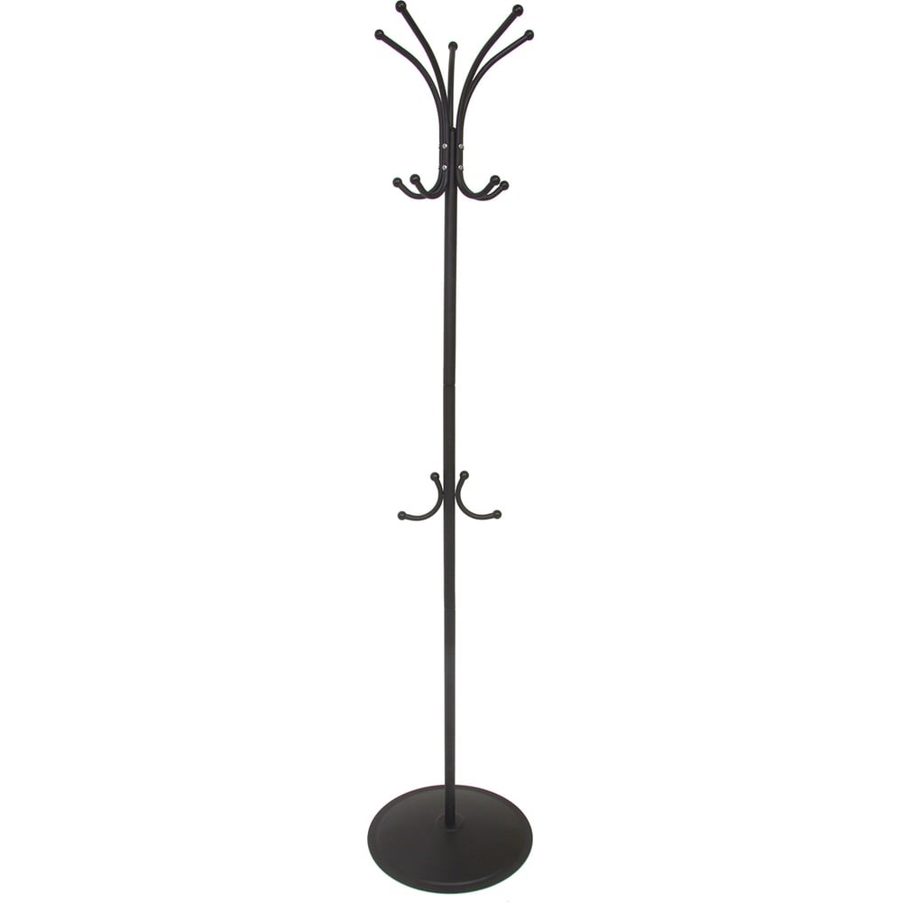 Изящная классическая металлическая вешалка для посетителей. 5 крючков для одежды, 5 для головных уборов и 2 крючка для сумок делают ее удобной для использования в офисах, кафе, салонах. Пластиковые шарики идеально подходят под размер петель верхней одежды. Вешалка легко собирается менее, чем за минуту. Полимерное покрытие надежно защищает вешалку. Основание вешалки - стальной блин обеспечивает хорошую устойчивость.