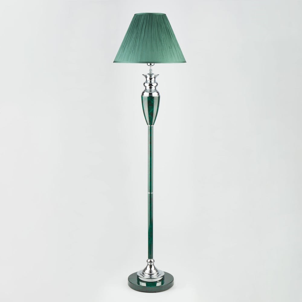 Торшер с тканевым абажуром 009/1T RDM в зеленом цвете - это стильный элемент светового дизайна в современных и классических интерьерах. Эффектный торшер со сменной лампой E27 поможет создать качественное дополнительное освещение на площади 2 м² и станет роскошным украшением вашей спальни или гостиной. Благодаря зеленому тканевому абажуру напольный светильник создает мягкое равномерное свечение, подходящее для комфортного чтения книг в вечернее время. Прочный металлический корпус светильника устойчив к механическим воздействиям, а защитное покрытие обеспечивает надежную электроизоляцию и презентабельный внешний вид.