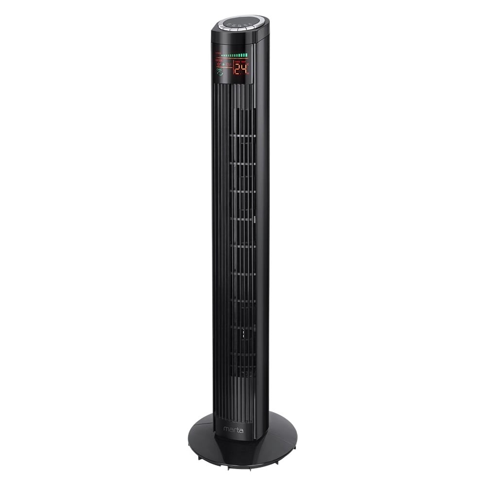 Напольный вентилятор колонного типа с LED дисплеем с индикацией температуры окружающего воздуха, удобным электронным управлением, пультом дистанционного управления и мотором мощностью 45 Ватт создает приятный поток охлаждающего воздуха. Низкий уровень шума и 3 скорости работы обеспечивают скорейшее достижение комфортных условий в душном помещении. Вентилятор может работать как в фиксированном положении, так и с поворотом корпуса, что существенно увеличит площадь обдува. Два дополнительных режима работы - «Природный» имитирует настоящий природный ветер - «Ночной» автоматически меняет силу потока воздуха Встроенный таймер позволит настроить автоматическое выключение вентилятора через заданное время вплоть до 12 часов. Постоянная циркуляция воздуха в комнате, либо офисе дарит ощущение свежести, способствует лучшему тонусу и отличному настроению в течение всего дня, а ночью – крепкому сну и быстрому восстановлению сил. Надежные компоненты вентилятора обеспечат долгий срок службы без каких-либо проблем.