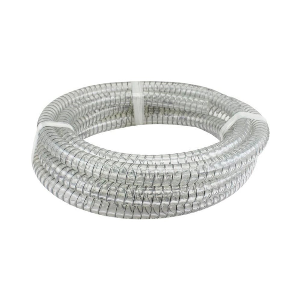 Прозрачный ПВХ рукав армированный стальной спиралью служит для подачи воды. Не вступает в реакцию с влагой, устойчив к УФ-лучам. Можно использовать для массовой подачи жидкостей. Также легко выдерживает значительное давление - нет риска разрыва. Внутри полимеры армированы для увеличенной прочности рукава.