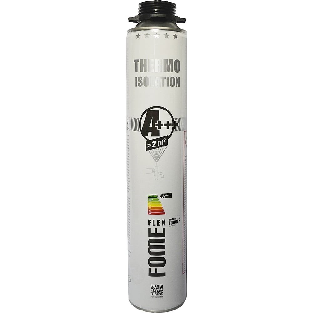 Напыляемый утеплитель Fome Flex Thermo Isolation A++, 850 мл 01-3-2-022 произведен по запатентованной технологии, предназначенный для утепления стен, потолков, чердаков, фундаментов, балконов и др. помещений. Продукт создан при сотрудничестве с мастерами отделки и утепления с целью облегчить их труд при утеплении либо изоляции труднодоступных, сложных форм, цилиндрических и многогранных поверхностейСферы применения:Для теплоизоляции и звукоизоляции больших поверхностей.Для ограничения тепловых мостиков.Для теплоизоляции поверхностей сложной формы в труднодоступных местах.Для теплоизоляции стен, крыш, чердаков, фундаментов и балконов помещений.Для теплоизоляции микроавтобусов, закрытых прицепов и грузовых холодильников.Для утепления трубопроводов.Для утепления металлических гаражей и беседок.Для утепления бассейнов, дренажных колодцев.Герметизация и изоляция проводов системы связи.