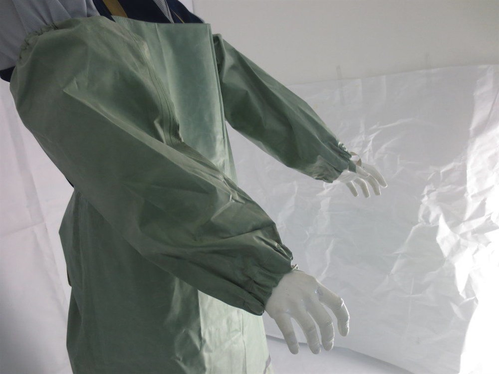 Отличная защита рук рабочего от масел, бензина, кислот содержанием до 80%, не говоря о воде. Шов нарукавников проклеен спец лентой. Имеют конусообразный вид, расширяющийся от кисти к плечу и стягиваются плотной резинкой.В узкой части имеется петля для одевания на большой палец, что не позволяет нарукавнику съезжать с руки. Изготовлены из прорезиненной ткани арт. БЦК(зеленого цвета). Длина 30 +-7см