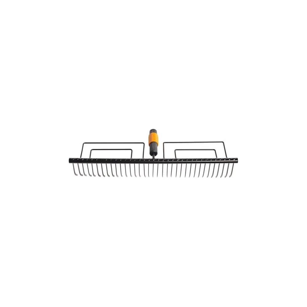 Насадка-грабли для сбора листвы Fiskars QuikFit 1000656 обладает большой шириной, что обеспечивает быстрый сбор листьев с большой площади. Инструмент также оснащен двумя рукояткам. Выполнена из углеродистой стали. Насадка дополнительно закалена.