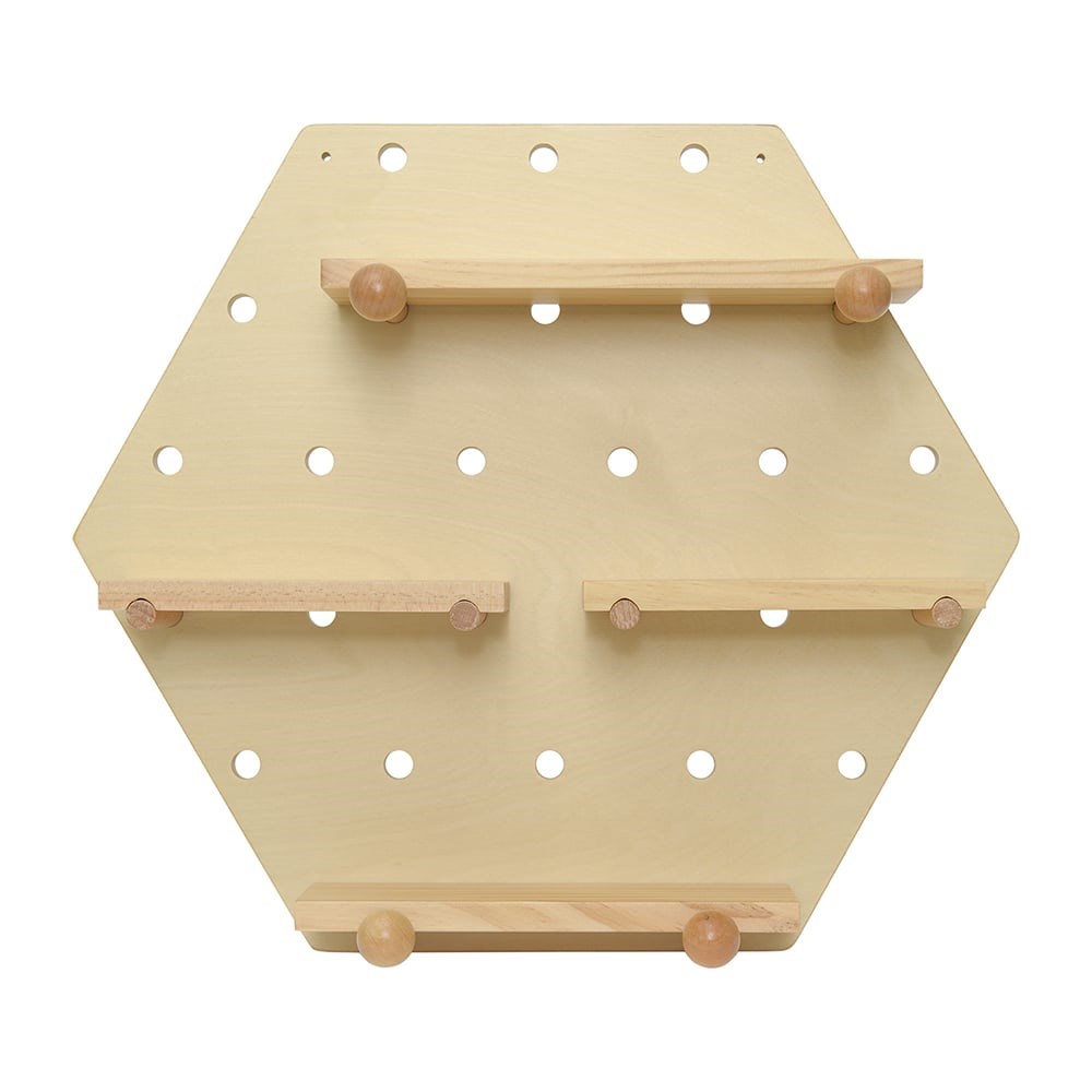 Полка шестиугольная Shely – многофункциональный предмет интерьера, который позволит удобно разместить различные аксессуары: наушники, декор, книги, игрушки, рамки с фотографиями, часы, цветочные горшки, сумки и многое другое. Конструкция предусматривает наличие горизонтальных полок и специальных держателей. Благодаря минималистичному дизайну и нейтральному цветовому решению модель прекрасно вписывается в любое оформление комнаты. Настенный монтаж обеспечивает компактное размещение. Практичные материалы гарантируют изделию износостойкость и долгий срок службы. Материалы: дерево, фанера. Размеры: 43х50 см. Глубина полки: 10 см. Цвет: светлое дерево. Пыль и загрязнения с поверхностей можно удалять при помощи мягкого влажного материала.