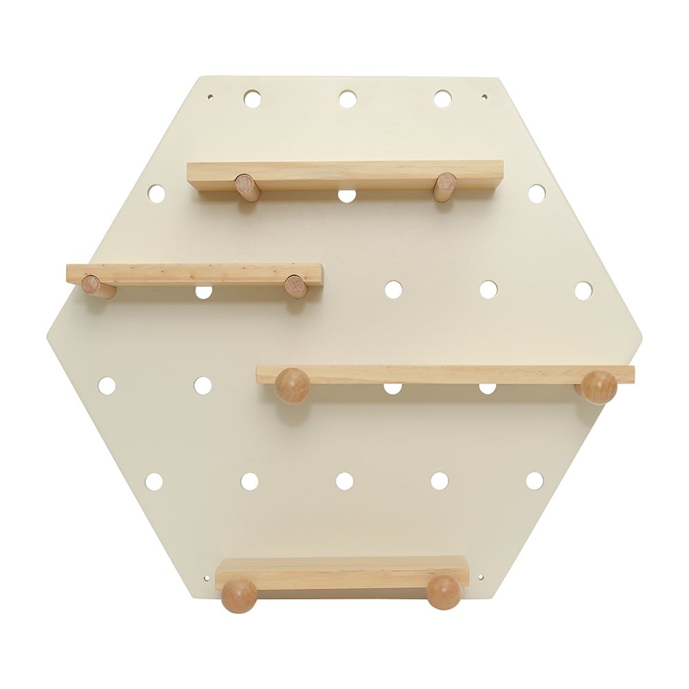 Полка шестиугольная Shely – многофункциональный предмет интерьера, который позволит удобно разместить различные аксессуары: наушники, декор, книги, игрушки, рамки с фотографиями, часы, цветочные горшки, сумки и многое другое. Конструкция предусматривает наличие горизонтальных полок и специальных держателей. Благодаря минималистичному дизайну и нейтральному цветовому решению модель прекрасно вписывается в любое оформление комнаты. Настенный монтаж обеспечивает компактное размещение. Практичные материалы гарантируют изделию износостойкость и долгий срок службы. Материалы: дерево, фанера. Размеры: 43х50 см. Глубина полки: 10 см. Цвет: белый. Пыль и загрязнения с поверхностей можно удалять при помощи мягкого влажного материала.