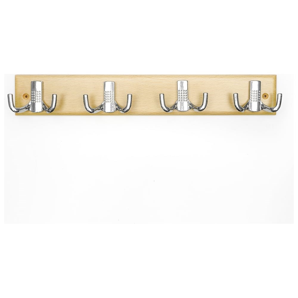 Настенная вешалка на деревянной планке с двойным крючком 4/2 бук-полимер хром Трибатрон Комфорт 88005 подбирается по цвету и формату под дизайн помещения. Поставляется с крючками. Профиль крюка рассчитан на нагрузку в несколько килограммов – оптимально для зимней одежды. Каждый крючок крепится на планку двумя саморезами для прочности.