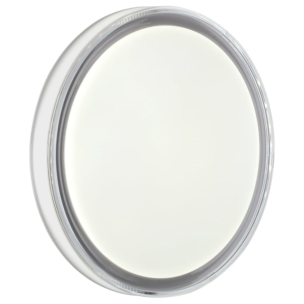 Светильник 7699/DL линии LAVEN состоит из металлического основания (базы) и пластикового рассеивателя. Материал рассеивателя - высококачественный пластик марки PMMA 2.0 белого цвета с матовой поверхностью, без текстуры. Пластик обеспечивает светильнику равномерное рассеивание и хорошее светопропускание. Форма плафона: круглая, декорирована светопропускающим ободом из гладкого пластика белого цвета. Степень защиты IP43 позволяет использовать светильник в определенных зонах влажных помещений. В комплект входит заменяемый LED модуль с линзами, мощностью 48Вт, которая соответствует лампе накаливания 460Вт. Источник света имеет комфортную цветовую температуру 4000К (белый свет).