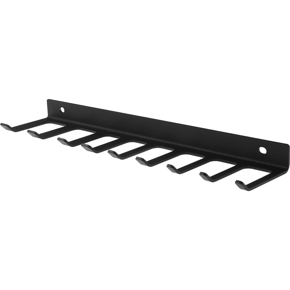 Настенный держатель EMBODIMENT для хранения ключей - это функциональный предмет, способный правильно организовать пространство и оптимизировать использование каждого сантиметра свободной площади. Кронштейн позволит легко и удобно расположить гаечные, накидные, комбинированные, разводные и ключи типа-S, став идеальным местом их хранения в гараже, на балконе, складе и мастерской, кладовке и в других местах. Обеспечивает порядок на рабочем месте и быстрый доступ к инструменту, который легко можно достать для работы и по окончанию - вернуть на свое постоянное место. Держатель имеет продуманную конструкцию, предусматривающую 9 мест для хранения ключей. Модель выполнена из стали с нанесением приятного на ощупь – черного муарового слоя порошковой краски, которая гарантирует равномерный цвет изделия, а так же устойчивость к механическим повреждениям. Детали в интерьере создают ощущение уюта и стиля. Изделие изготовлено из экологически чистых и качественных материалов. Усиленная конструкция имеет толщину 2 мм, что позволит использовать держатель долгие годы.