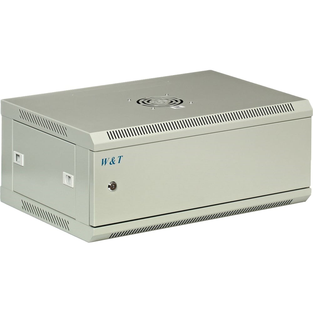 Серверный настенный шкаф W&T 4U 600х450 19 дюймов серый M046045GWTWOF имеет корпус из стали толщина которой 1.2 мм. Технология покраски порошковая. Нагрузка до 50кг. Сверху и снизу шкафа установлены металлические планки, при демонтаже которых, Вы имеете возможность заводить кабель в шкаф и подводить его к оборудованию, установленному в нем.