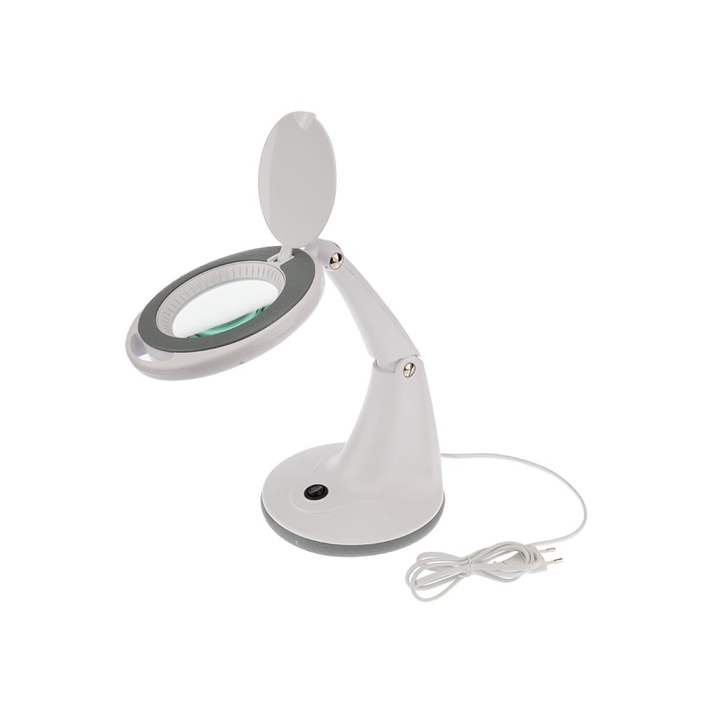 Лупа настольная REXANT предназначена для визуального увеличения различных мелких деталей или предметов. Применяется для выполнения различных работ, где необходима высокая точность и безопасность. Используется при организации труда людей со слабым зрением, а также для других работ, требующих дополнительного увеличения и подсветки рабочего поля. Оптическая сила линзы – 3 диоптрии, что обеспечивает увеличение в 1,75 раза. Размер линзы: 100мм. Устройство имеет следующие конструктивные преимущества: стеклянная линза, бестеневая всесторонняя подсветка, удобный эргономичный корпус, экономичное энергопотребление, встроенный электронный блок управления, ровный свет без мерцания. 30 SMD светодиодов (LED), расположенных по кругу, обеспечивают ярое свечение. Лупа оснащена откидной крышкой, которая защищает линзу от повреждений и пыли.