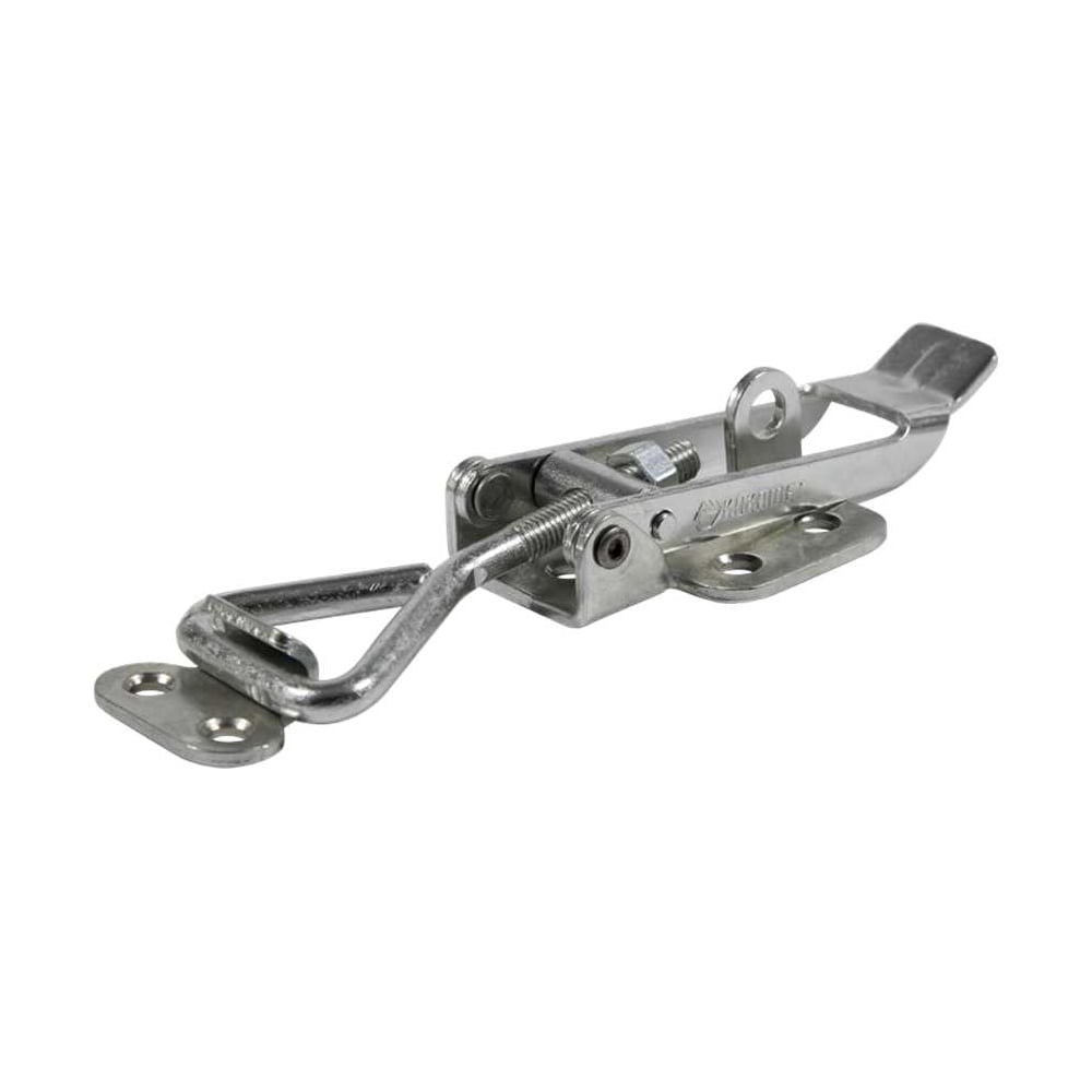 Защелка подходит для быстрого запирания и укрепления крышек и клапанов. Для каждой конструкции возможна индивидуальная настройка перемещения запирающего бугеля. Материалы и исполнение: Основа из нержавеющей стали; Заклепки из нержавеющей стали 304; Втулки закаленные; Длина резьбы: 40 мм; F1 зажимное усилие: 2000 Н; F3 крепежная сила: 2500 Н; С min.: 47 мм; С max.: 61 мм; L min.: 177 мм; L max.: 191 мм.