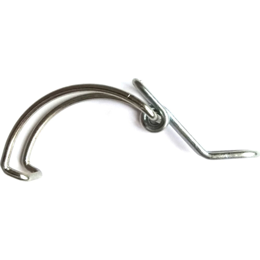 Натяжной замок защелка выполнен из стальной пружинной проволоки диаметром 2,5 мм, покрытие – цинк, которое предохраняет металл от коррозии и придает поверхности изделия блестящий оттенок. Предназначен для установки на кронштейны, ящики.