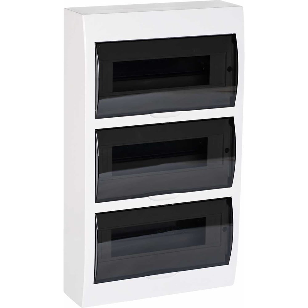 Щиты распределительные пластиковые EKF PROxima предназначены для установки модульной аппаратуры: автоматических выключателей, УЗО, таймеров, устройств управления и т.д. Используются для электромонтажа в жилых, административных, торговых помещениях. Вертикальное открывание дверцы позволяет устанавливать бокс независимо от положения соседних стен. Электрощиты изготовлены из прочного ABS-пластика. ДОПОЛНИТЕЛЬНЫЕ ХАРАКТЕРИСТИКИ Номинальное рабочее напряжение: 240/415 В Материал корпуса: ABS-пластик Степень защиты по ГОСТ 14254: IP41 Климатическое исполнение по ГОСТ 15150: УХЛ3