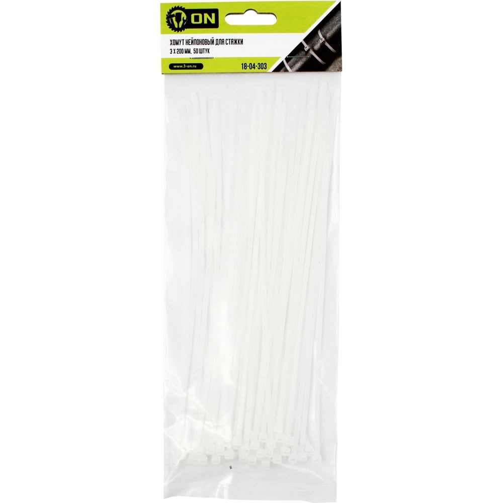 Нейлоновый хомут для стяжки On 3х200 мм, белый, 50 шт./уп. 18-04-303 применяется в автомобилестроении, радиотехнике, для быстрого и удобного проведения электромонтажных работ, крепления баннеров, воздуховодов, труб и других сферах жизнедеятельности.