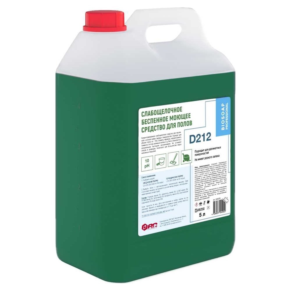 Слабощелочное беспенное моющее средство для полов АиС BIOSOAP Proffecional / D212 5л 9060295 для машинной и ручной мойки твердых поверхностей. Подходит для уборки полов из ПВХ, гранита, мрамора, керамогранита, ламината, бетона, наливных полов и т.д. Легко справляется с ежедневными бытовыми загрязнениями.Применение:Разбавить водой: ЕЖЕДНЕВНАЯ УБОРКА 0,3-0,5% (30-50мл на 10л воды), ПЕРИОДИЧЕСКАЯ УБОРКА 1-2% (100-200мл на 10л воды).Вымыть полы с использованием поломоечной машины (при отсутствии машины допускается ручной метод уборки с использованием моечного инвентаря).