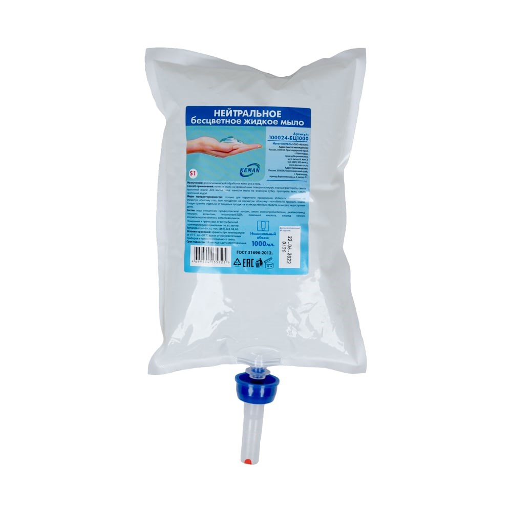 Нейтральное жидкое мыло для диспенсера S1 KEMAN 100024-бц1000 25066