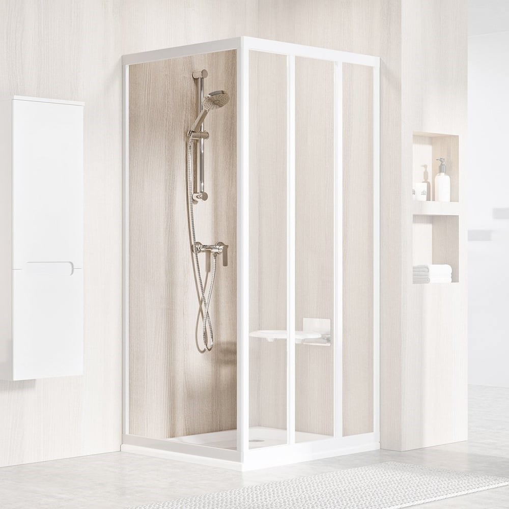 Цвет профиля - белый. Регулируемая ширина. Габариты с регулировками - 72-75.5х188 cм. Универсальная ориентация. Устанавливается с дверьми для душа Ravak 10° ASDP3 и душевым уголком ASRV3+ASRV3. Внимание! Фото может отличаться, ориентируйтесь на технические характеристики.