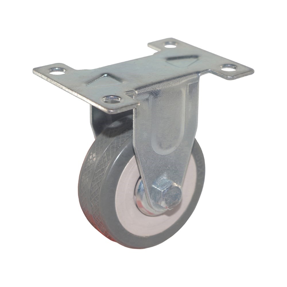 Область применения:перемещение легких грузов на грубом покрытии. Подходят для применения как в помещениях, так и на открытом воздухе.Материал:углеродистая сталь, резина.Особенности:литые шины колеса изготовлены из термопластичной серой резины, обладающей хорошими амортизационными свойствами, и не оставляющей следов на полу при движении. Площадка опоры изготовлена из стойкой к коррозии углеродистой стали. Оснащена подшипником скольжения, снижающим трение и увеличивающим срок службы колеса.
