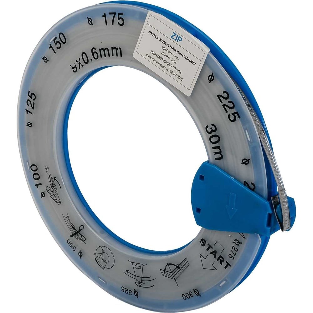 Хомутная лента NBPT ZIP 9мм предназначена для изготовления хомутов требуемого диаметра.Материал исполнения ленты: нержавеющая сталь AISI 316Длина ленты в бухте: 30мМинимальный диаметр хомута при сборке: 25 ммРекомендуемый момент затяжки: 2,5-3 Nm.Как рассчитать длину отрезка для требуемого диаметра хомута: L-длина отрезка мм D-требуемый диаметр Dx3,14=LПример: Требуемый диаметр хомута-100мм 100х3,14=314 мм Отрезаем отрезок ленты с запасом 50 мм-70мм, получаем длину отрезка 370 мм.